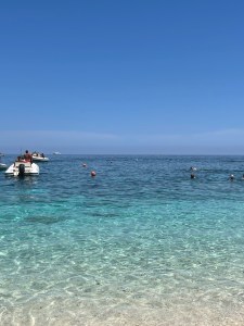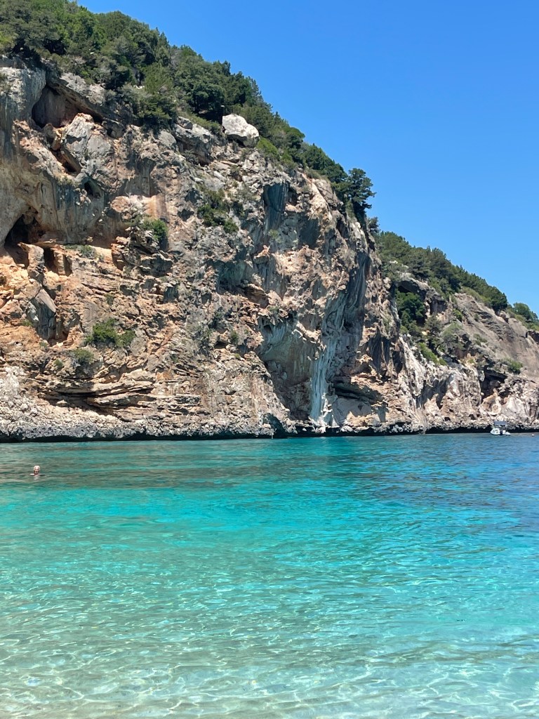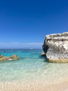 Next, we stopped at Cala Biriola. This much smaller beach is one of the most popular beaches. It is absolutely breathtaking. I would have been content staying at this one all day, but the boat tour only stopped here for about an hour and a half. The rocks were easier to navigate barefoot, and I marked this beach down as one I wanted to return to when we did our private excursion in a few days.