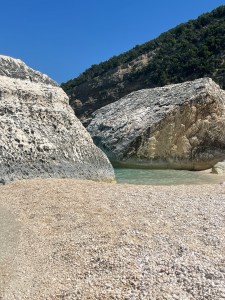 Our next stop was the longest beach on the tour, Cala Luna. This time we hopped off for a couple of hours where we were able to get some sun or relax in the shade of one of the caves that were backdrops to the beach. This beach was beautiful, but it was not my favorite of the beaches due to the mixture of hard rocks and pebbles that were difficult to walk on. It seems, too, that with larger beaches you have more people.