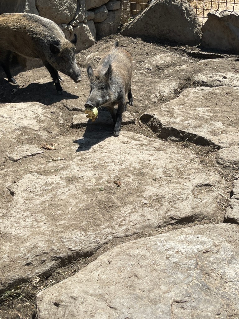 I was shown how in the past, wheat was ground into flour using a grinding wheel powered by donkeys and how the donkey was also used to bring water up the old well. Later, in the afternoon I watched how to make Carasau bread. Carasau is a traditional flatbread known for its crispiness and lightness. It takes a lot of skill to master the taste and thinness of Carasau bread. The dough is rolled out very thin and placed in a fire oven. When it fills with air in the middle it creates two layers and then the edges are cut to create two pieces of bread. Then the bread is baked a second time to add more color to it. To me, it was almost like eating a very crisp and delicious cracker. It was the perfect food for shepherds because it would remain good to eat for a long time while the shepherds were isolated in the countryside.