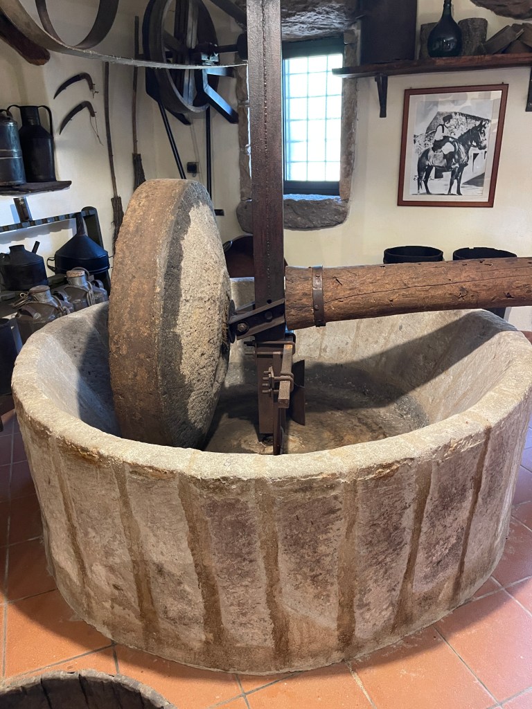 Although the farm has become a living history museum, it remains a working farm today. While visiting there, I was able to learn about the history of the family that owns it, the region, and the community in which it is located. The family has collected a multitude of artifacts over the years that they display and love to share with visitors. I was able to taste the wine made from the old winepress and olive oil made from the stone olive press which always played central roles in the area. The farm is home to plants that were used for dyeing cloth, essential oils, and making medicines in the past.