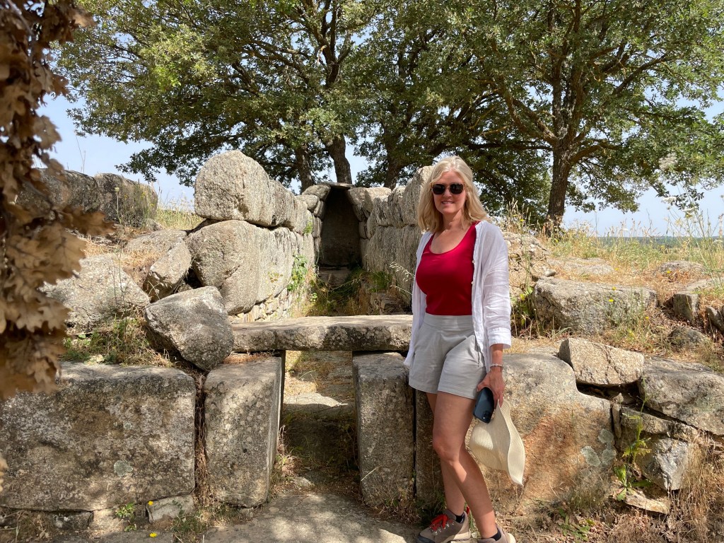 Our first stop was the cool and interesting necropolis of Madau, where we visited four giants’ tombs that told of the cult of the dead of the Nuragic civilization. The tombs have been preserved in nearly perfect condition. According to legend, Sardinia was once home to a race of giants. People who support this theory point to the huge size of the stones used on the burial grounds. Archaeologists argue that only the tombs are giant, but the bodies buried at the site were of average human size. The mystery doesn’t just stop at the size of the bodies buried. There are also mysteries about the rituals of the burials. Many tombs of giants are oriented toward the Taurus constellation and point to the brightest star in the sky. On the days of the Equinoxes, the light of the rising sun enters directly into the tomb corridor through a small opening on the stele.