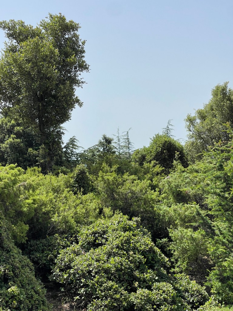 We departed the tombs to travel to the forest of Montes, one of the wildest but most beautiful areas of the Supramonte. We parked the vehicle and took a short hike that allowed us to reach the top of Monte Novo S. Giovanni, at 1316 m high, a real natural monument with spiers that go up to 70 meters high. On the way up, we familiarized ourselves with the wild herbs growing on the trail. Our guide explained that the herbs grow wild everywhere in the area and are still collected by locals and used for a variety of things such as cooking, extracting essential oils, and medicine. From the top, we were able to view the beauty of the immense expanse of the forest.