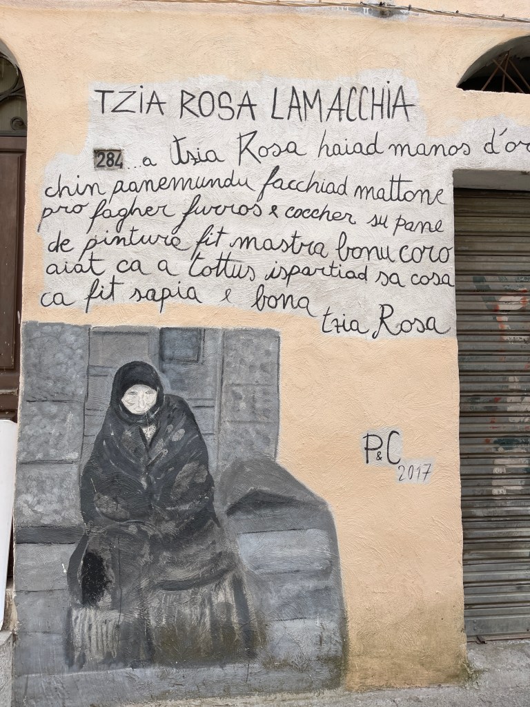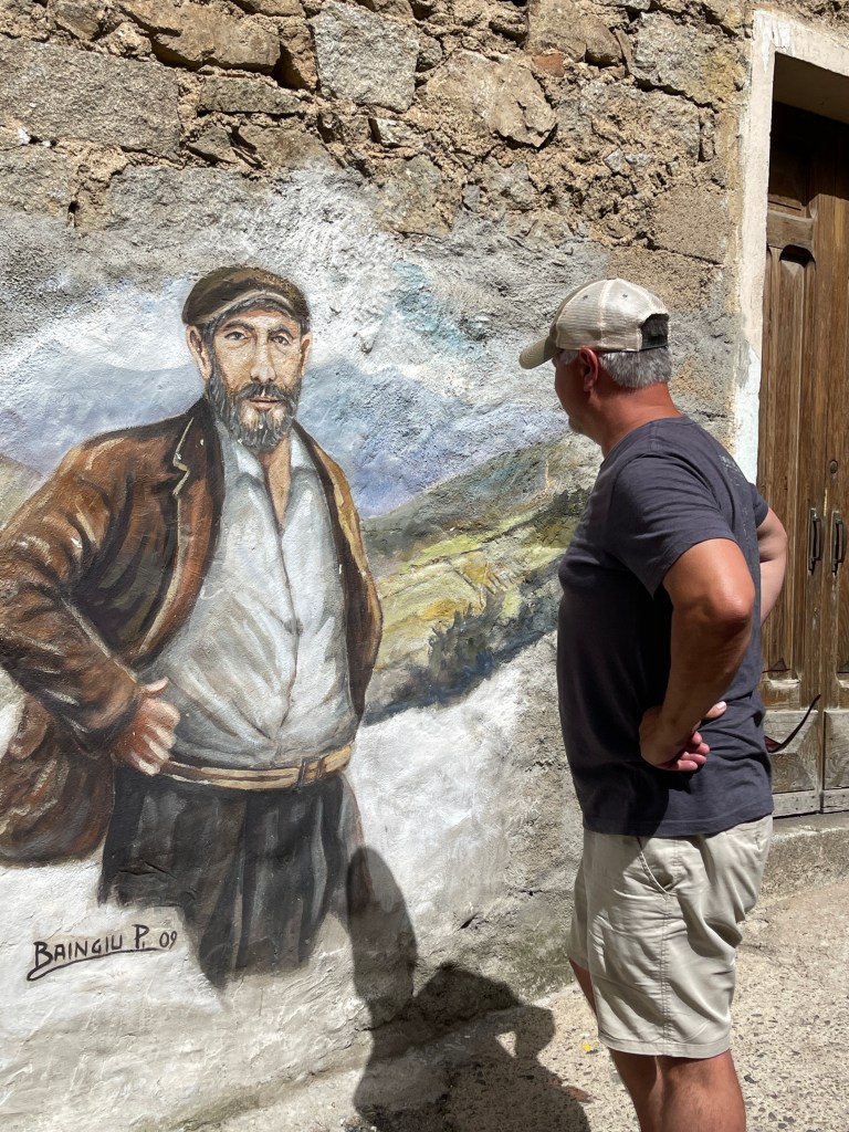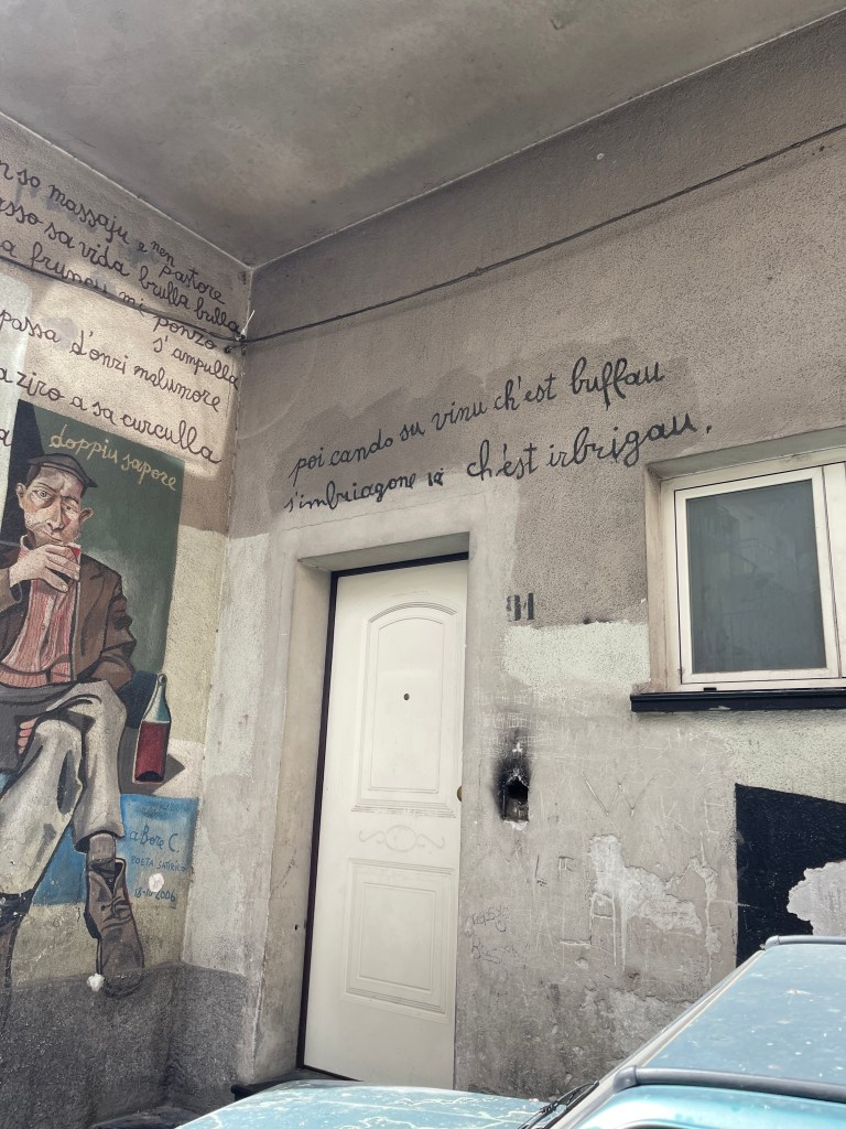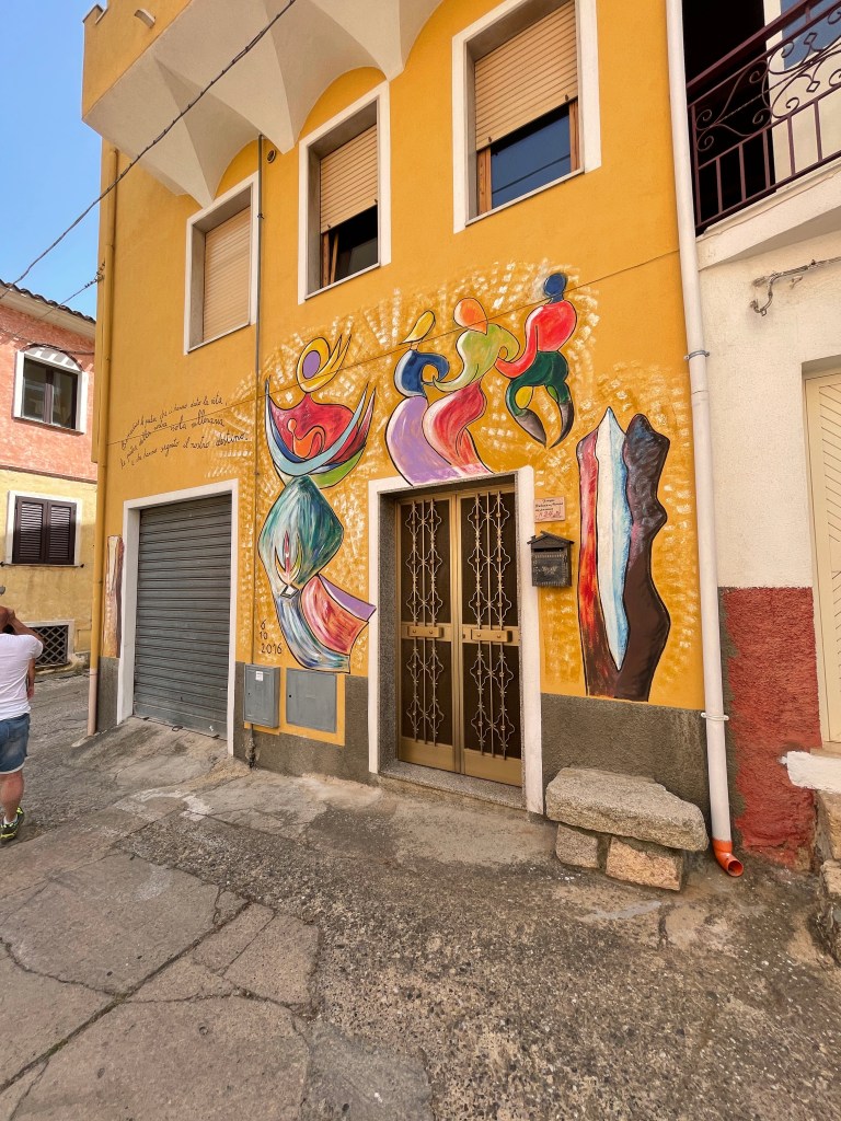 Just a short drive from the mountains where we had lunch with the Shepherds, lies the historic village of Orgosolo. Orgosolo is known for its more than 150 murals that adorn the buildings on nearly every street. They are on the walls of apartments, businesses, restaurants, and even on churches. The murals were first painted by an anarchist theatre company called Dioniso as a way to protest against politics, and they served as this for many years. In more recent years, several murals were painted to showcase an artist’s work or simply to record moments of life in the village. However, there are still some others being used to openly disagree with something.