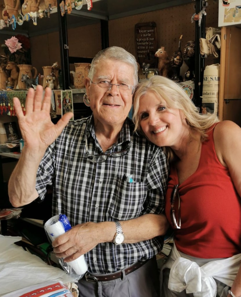 We spent the afternoon walking around Orgosolo learning about (or trying to figure out) what each mural represented, or what political statement it was trying to convey. Then our guide brought us into a little shop where we met the most charming proprietor of the shop. At nearly 90, he was energetic and full of life. He was excited to have me try the traditional headwear of the ladies of Orgosolo, and then he brought out his homemade Mirto, a popular liquor in Sardenia. He kept it in a liter-sized beer bottle. I think I heard him say that the government didn’t want people to make their own so he used the beer bottle to keep it secret. The citizens of Orgosolo at any age sure are a feisty group!